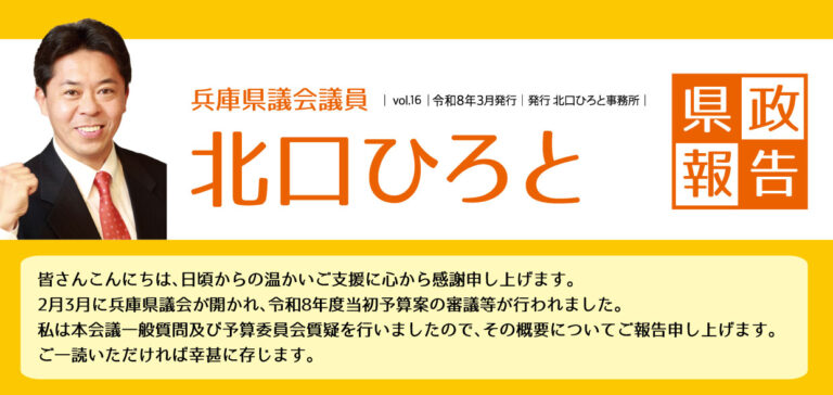 皆さんこんにちは、日頃からの温かいご支援に心から感謝申し上げます。2月3月に兵庫県議会が開かれ、令和8年度当初予算案の審議等が行われました。私は本会議一般質問及び予算委員会質疑を行いましたので、その概要についてご報告申し […] -
